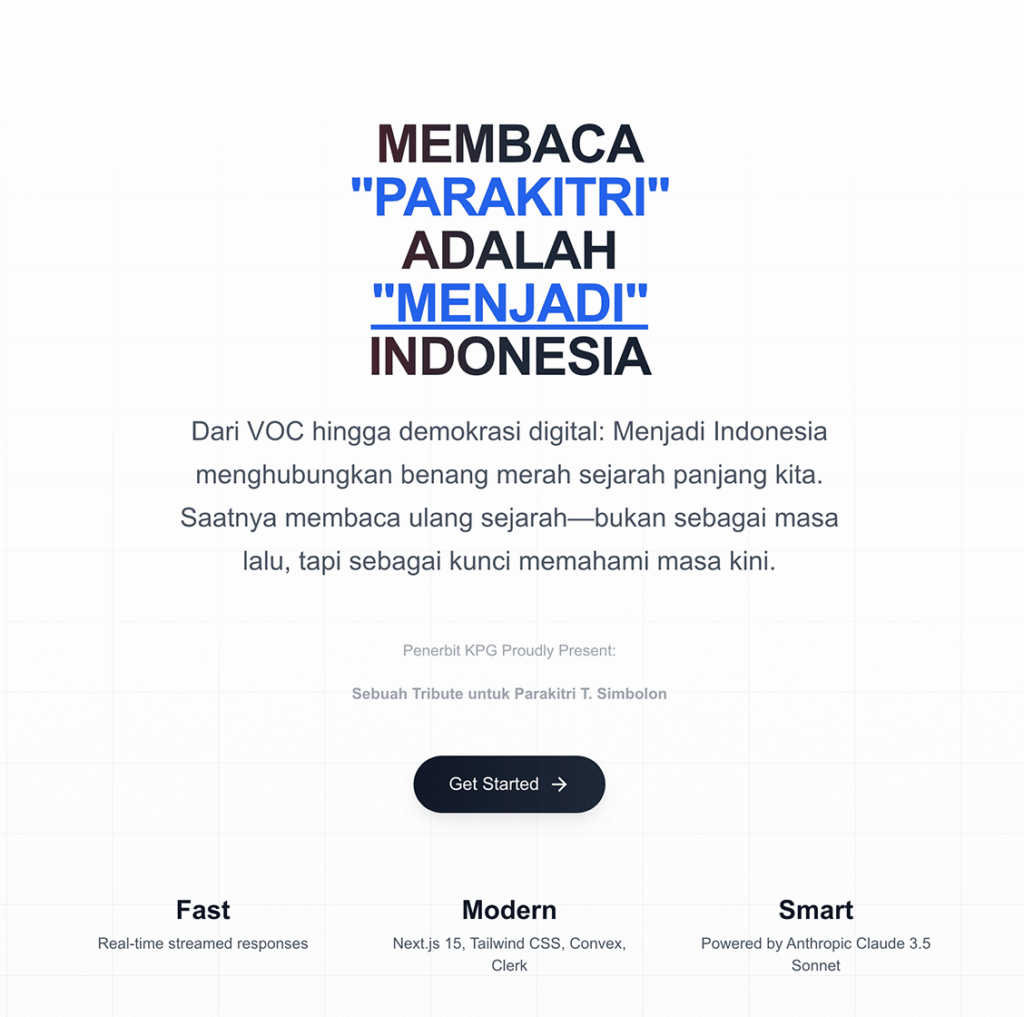 Agentic AI TRIBUTE untuk Parakitri T. Simbolon — meniru gaya berpikir kritis dan reflektifnya untuk mendorong literasi dan diskusi intelektual di era digital.