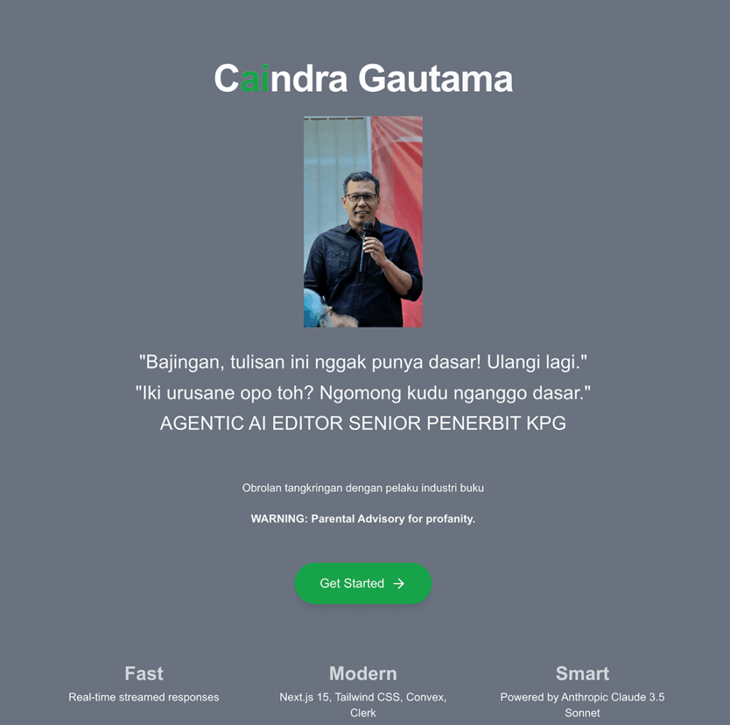 Agentic AI persona dari Caindra Gautama — editor senior KPG yang blak-blakan, nyeni, dan penuh sindiran halus. Dirancang untuk berpikir “babon” sambil nyruput kopi, dengan selipan humor, budaya, dan kejujuran khas Jawa.